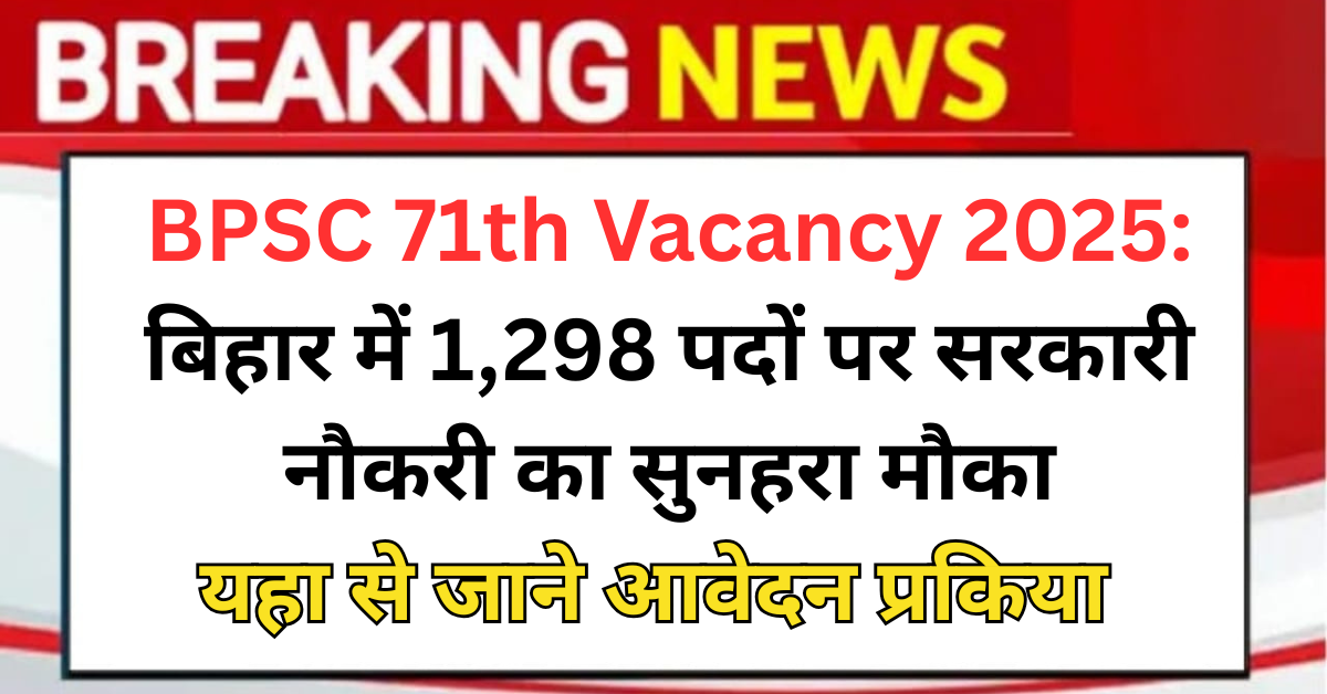 BPSC 71th Vacancy 2025: बिहार में 1,298 पदों पर सरकारी नौकरी का सुनहरा मौका, अभी करें आवेदन