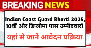 Indian Coast Guard Bharti 2025: 10वीं और डिप्लोमा पास उम्मीदवारों के लिए सुनहरा मौका